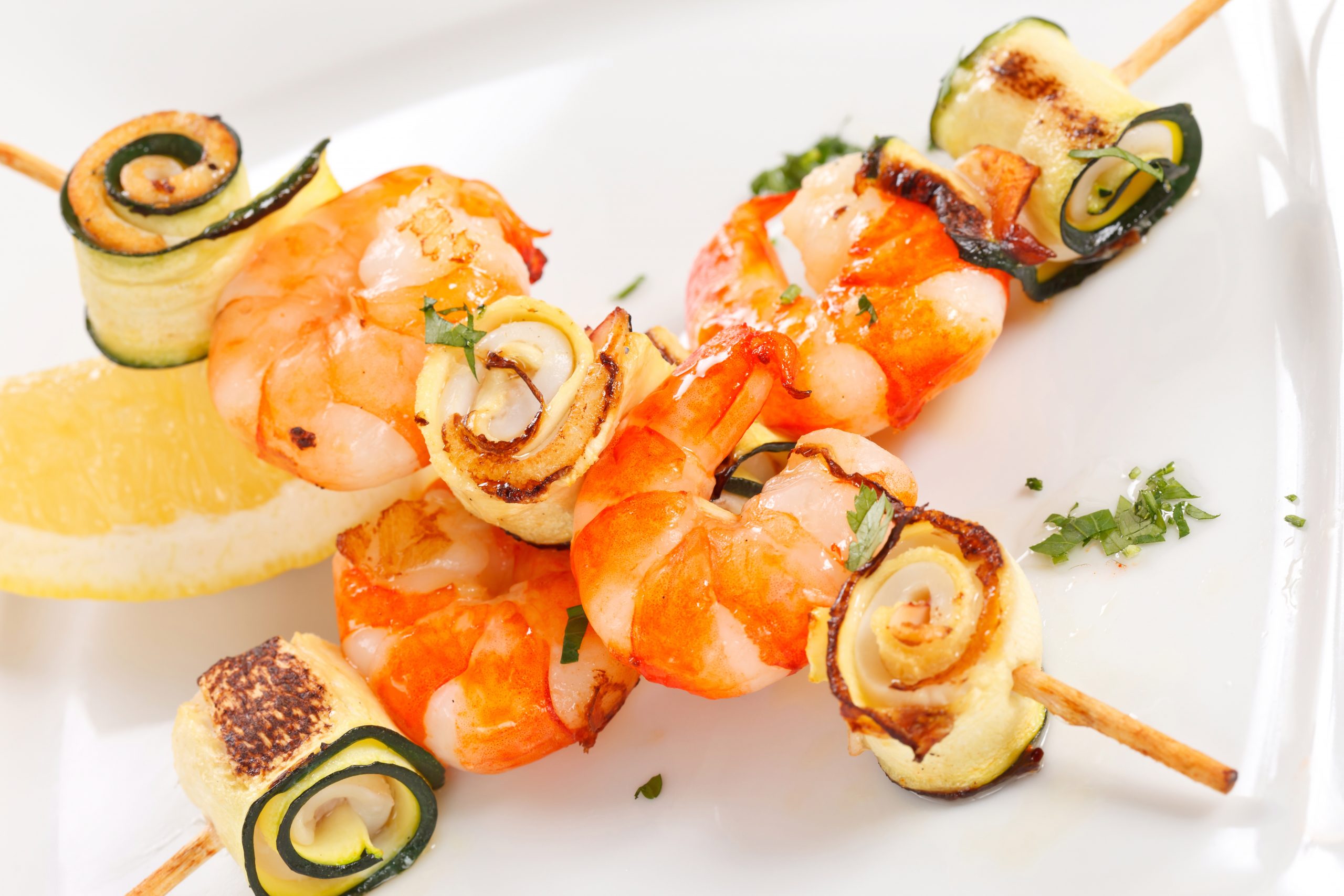chargrilled broccoli & lemon red tiger prawns seabream shellfish squid